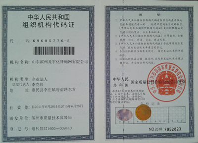 18年 山東濱州龍宇化纖繩網有限公司始建于一九九六年,位于濟南至濱州市220國道中段,與新建濱博黃河大橋交匯的李莊鎮工業園。李莊鎮生產繩網已有三百多年的歷史,被譽為繩網之鄉,其交通便利,經濟發展迅速,繩、網、安全帶及化纖制品規格齊全。2001年公司被指定為國家特種勞動防護用品定點生產企業,于2002年通過GB/T19001-2000-ISO90012002標準國際質量管理體系認證。