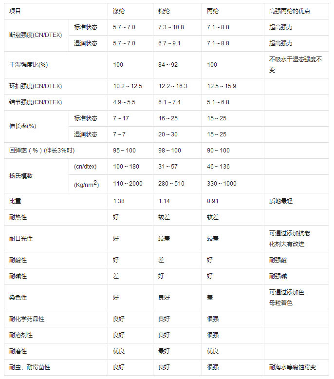 我公司研制的高強丙綸長絲,因其具有高強(強力大于8g /d )、抗老化、耐酸堿、質輕、耐磨、低導熱性、耐海水腐蝕、不吸濕等優點,被廣泛應用于安全網帶、柔性集裝袋、土工布、工業過濾布、繩纜、電纜、高壓消防水帶、輸送帶、工業縫紉線、混凝土抗裂纖維、蓬帆布等領域,是替代滌綸、錦綸、乙綸、尼龍的新型理想化纖材料。