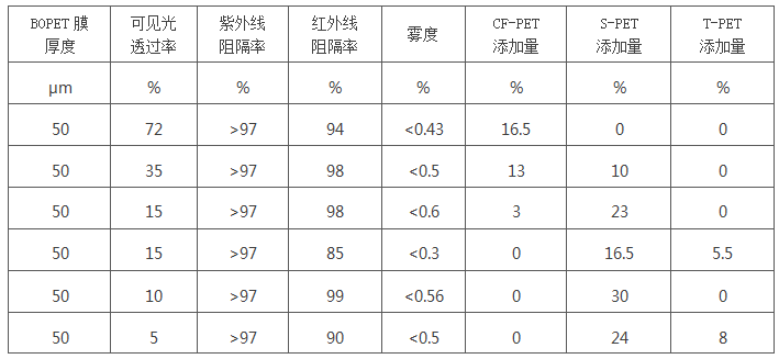 納米隔熱粒子的超微粒子特性,使得其對塑料的物理性能不會產生不良影響; 透明性好,隔熱率高。VLT 70%時,紅外線阻隔率達95%以上; 紅外阻隔波段寬,在800~2500nm均顯著的吸收性能,因此隔熱效果顯著; 冬天室內的紅外線被阻擋反射,減少熱量耗散,因此具有優異的保溫效果; 耐候性強,采用純無機金屬氧化物為有效成分,不褪色,性能無衰減。 產品用途 用于開發具有隔熱、防紅外線功能的PET/PP/PE薄膜或板材。 用于隔熱窗膜:通過雙向拉伸制成隔熱防紅外薄膜,生產高性能隔熱窗膜。 用于農業大棚膜:通過多層共擠,生產隔熱保溫大棚膜,提高農作物產量。