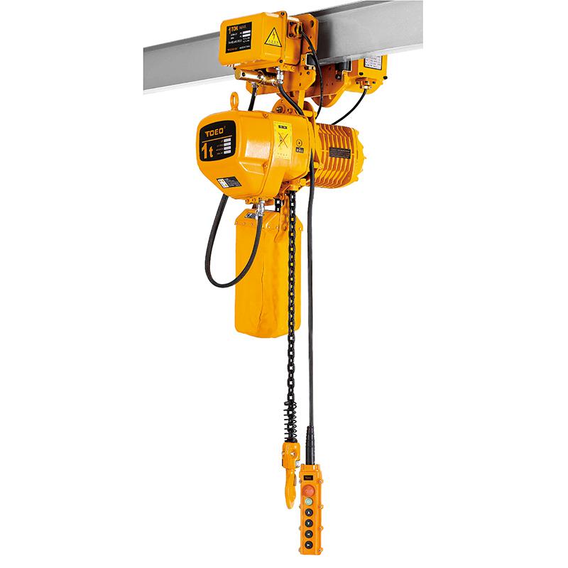 產品介紹: 額定載重:0.5T-5T 起升高度:3米/9米 機械行業標準 JB/T 5317—2016 產品特點: 1.外殼:外殼輕巧而堅固,散熱率高,全密封性設計適合在作業條件較差的環境中使用; 2.逆相保護裝置:為特殊電器裝置,當電源接線錯誤時,控制電路無法工作; 3.極 限開關:重物吊上吊下都有ji限開關裝置,使電機自動停止,以避免鏈條超出,確保安quan; 4.24V/36V裝置:當在操作時如遇開關漏電,可避免意外事故發生; 5.制動裝置:此裝置可以實現在電源切斷時及時剎車; 6.鏈條袋:輕巧、美觀、耐用; 7.鏈條:采用進口FEC80強熱處理合金鋼鏈條。 產品用途: 鏈條電動葫蘆的使用范圍很廣,主要應用于各大廠房、倉庫、風力發電、物流、碼頭、建筑等行業,用于吊運或者裝卸貨物,也可以將重物吊起來方便工作或修理大型機器。