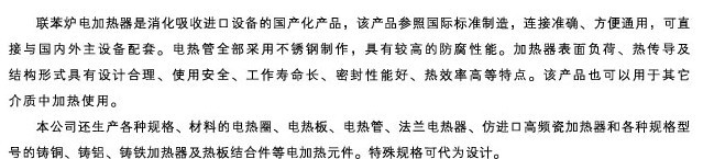聯苯爐電加熱器是消化吸收進口設備的國產化產品。