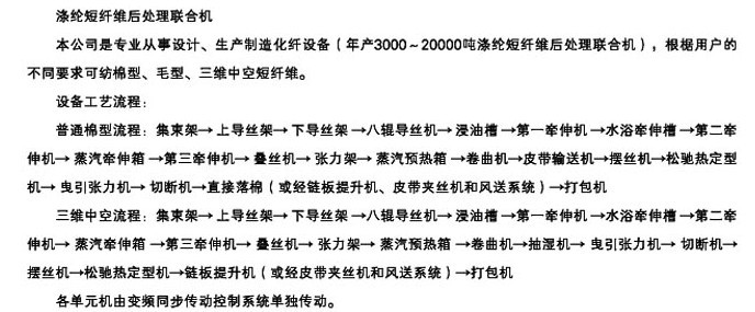 滌綸短纖后處理聯合機